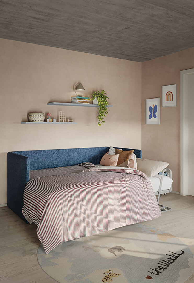 Materiali innovativi, finiture solide, resistenti e soluzioni “salva spazio”, sempre più necessarie, fanno si che l’ambiente cameretta sia una parte importante della casa nel suo complesso.